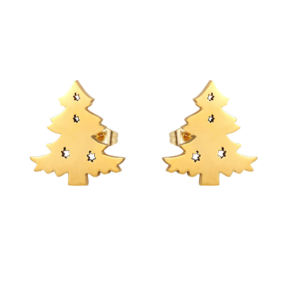 Сережки з нержавіючої медичної сталі з позолотою "Ялинка"